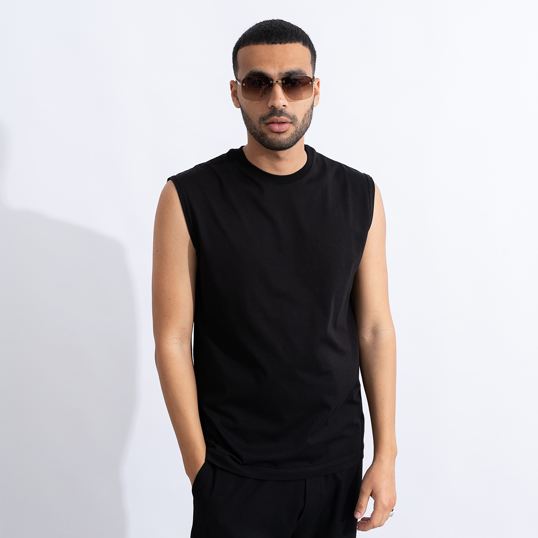 Άνετο αμάνικο μπλουζάκι μαύρο.