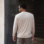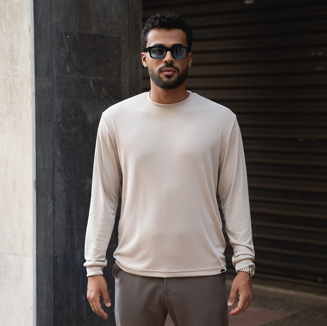 Ανάλαφρη μακρυμάνικη εκρού μπλούζα από βισκόζη με ελαφρώς βελούδινο πέλος και διακριτικό υφαντό σε μαύρο χρώμα. Σύνθεση: 92% viscose- 8% lycra. Ελληνικής κατασκευής. Το μοντέλο έχει ύψος 1,80 και φοράει M