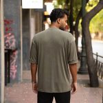 Ανάλαφρη μπλούζα από βισκόζη με ελαφρώς βελούδινο πέλος και διακριτικό υφαντό σε χακί χρώμα. Σύνθεση: 92% viscose- 8% lycra. Ελληνικής κατασκευής. Το μοντέλο έχει ύψος 1,80 και φοράει M